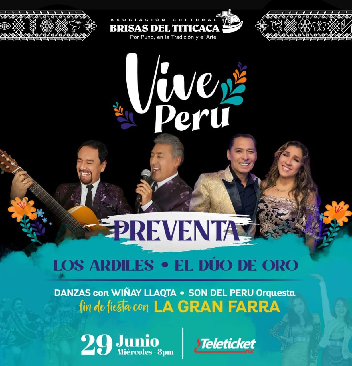 CICLO JULIO - SETIEMBREBajo este concepto se ha diseñado un espectáculo compuesto por música y danzas peruanas, cuidando la originalidad y los detalles a fin de que se convierta en un viaje imaginario por las diferentes regiones del Perú. Una propuesta única en la que la magia y el color de las danzas nacionales demuestran la calidez, la alegría y el arte de los peruanos. Un amplio escenario es el lugar donde más de 50 artistas presentan el mejor espectáculo de folklore peruano. Lo mejor del folklore peruano bajo el cielo de Lima.